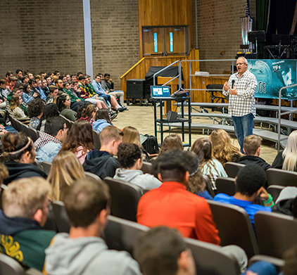 Quando ele tem alunos que lhe dizem que já não vão experimentar a marijuana ou outras drogas por causa da sua apresentação, ele diz que é o que está em causa nos seus esforços.